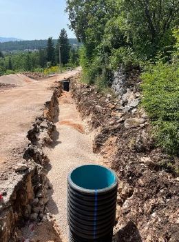 Radovi na LOT 3 – područje 3. Kanalizacijska i vodoopskrbna mreža naselja Glavina Donja istok, Medvidovića Draga i D. Vinjani – u ovom mjesecu su završeni radovi na kolektoru i pripadnim vodovodima K9.1, K16, K16.1, K21.2, K21.5 i V9.1, V16, V16.1, V21.2 i V21.5. Radovi su započeli na kolektoru K3.7, K5, K9, K 16.7, K18.1, K20 i pripadajućem vodovodnom ogranku V9, V16.7 i V20. Ukupno je izvedeno 4.445,59 m gravitacijskih kolektora glavne mreže, 9.120,30 m sekundarne mreže, 1.786,03 m tlačnog kolektora i 438 kanalizacijskih kućnih priključaka uz 5.902,16 m vodovodne mreže.